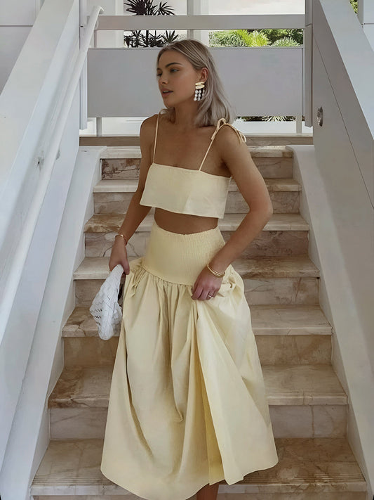 Short Sleeve Crop Top and Maxi Pleated Skirt Set
