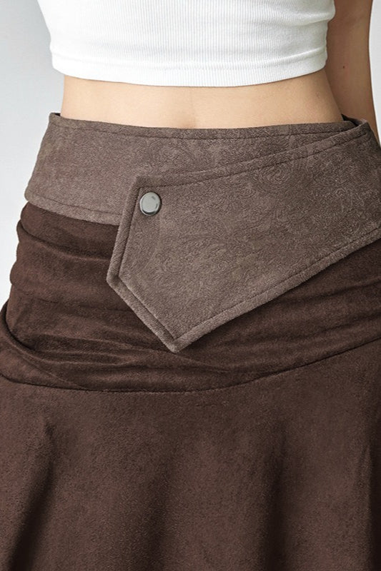 SOLID COLOR HIGH WAIST ELASTIC WAIST PLEAT FRINGED SKIRT