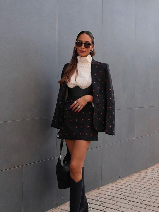 Strawberry Printed Blazer & Short Skirt Coord Set