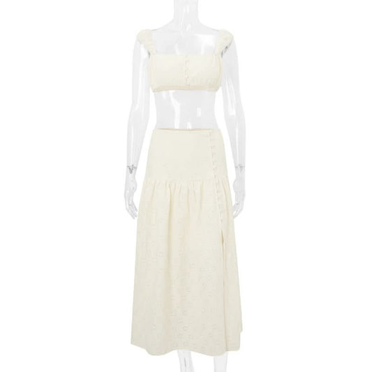 Strapless Cami Lace Maxi Skirt Two Piece Set