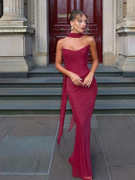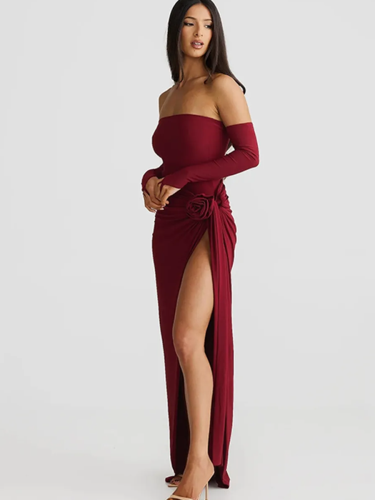 Two Piece Ruched Top & V Shape Cut Waist Maxi Skirt Set