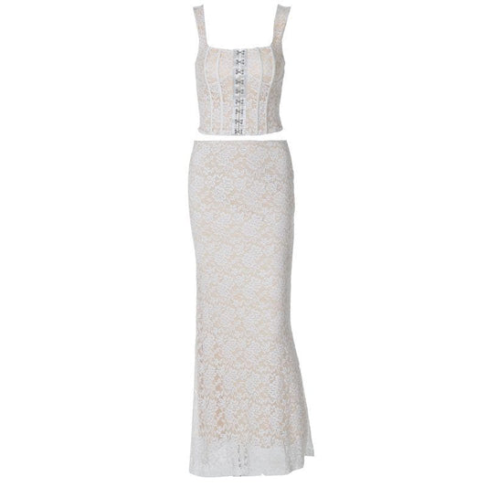 Two Piece Braided Cut Out Tank Top & Skirt Set
