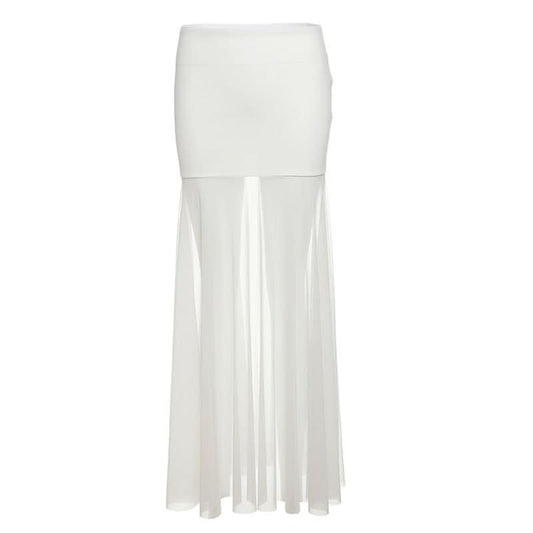 White Vintage Flower Decor Bandeau Top & Maxi Skirt Set