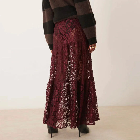 Y2K Women's Lace Crochet Umbrella Long Skirt Bohemian High Waist