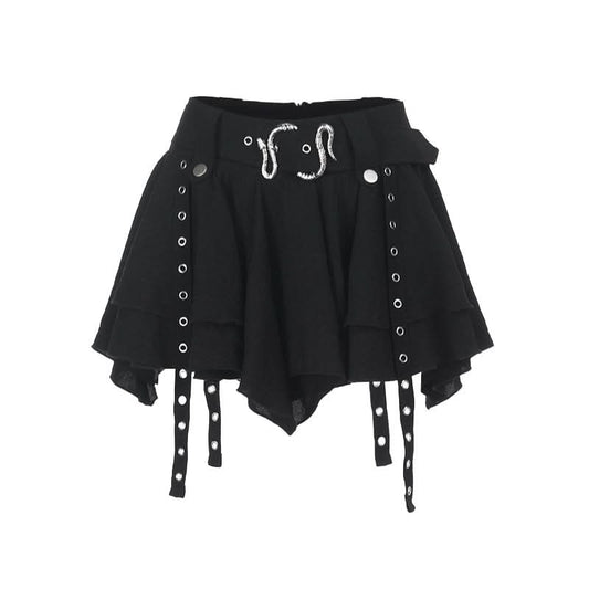 Y2K Plaid Faux Button Skirt with Built-in Shorts Skirt
