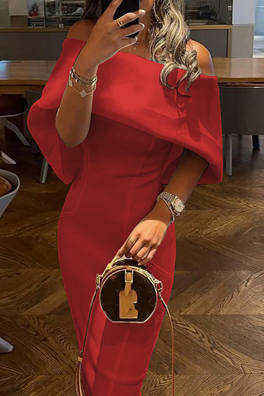 Casual Print Patchwork Off the Shoulder Pencil Skirt Dresses(3 Colors)