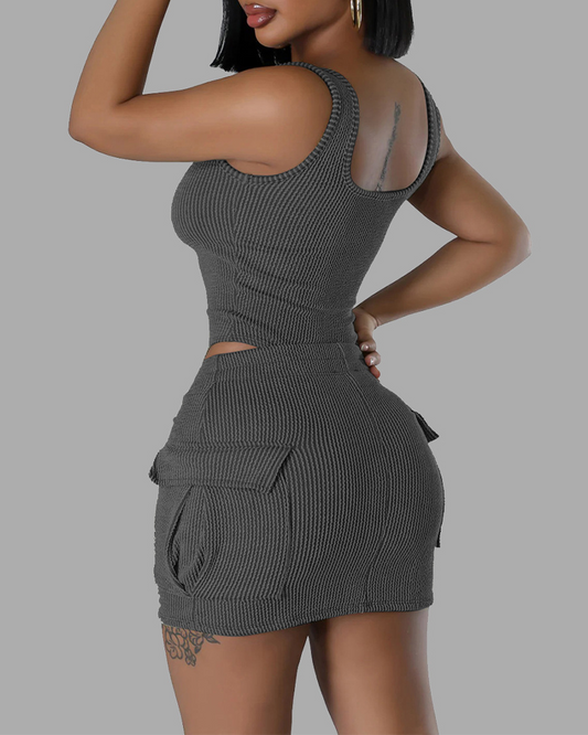 Casual Sleeveless Wrinkled Slim Long Skirt Suit