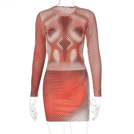 Crewneck long sleeve print skirt set - Final Sale