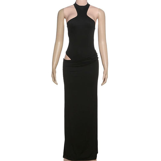 Crewneck hollow out backless ruched tank cut out maxi skirt