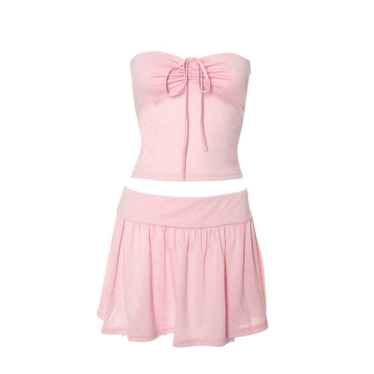 Double Breasted Top Pure Desire Pleated Skirt Suit