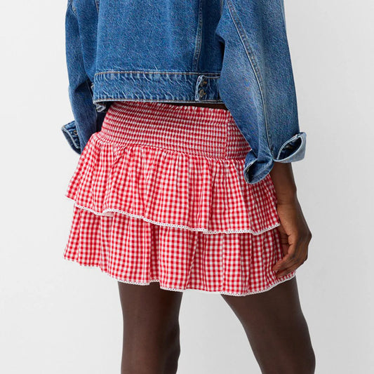 Elegant Mood Tulle Pleated Ruffle Elastic Waist Tiered Midi Skirt
