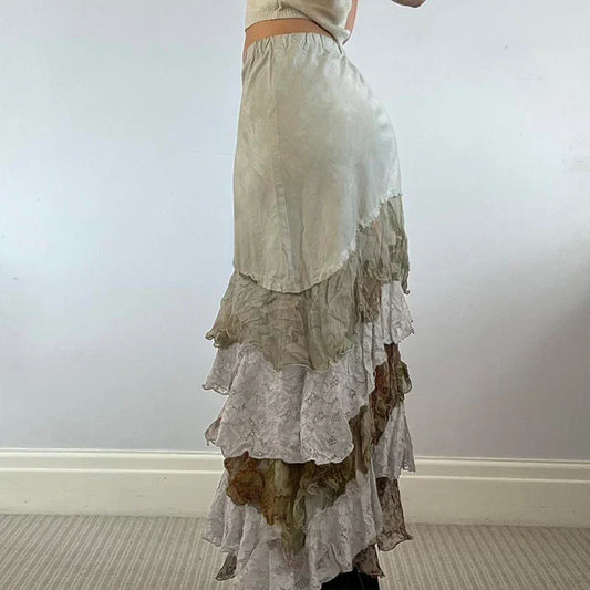 HEYounGIRL Y2K Aesthetic Lace Tiered Irregular Skirt Mori Girl
