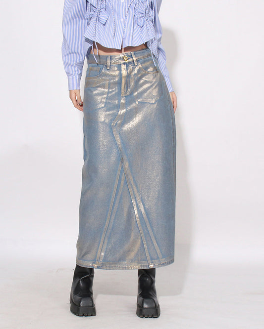 High Waist Slim Green Silver Fox Fur Mermaid Skirt