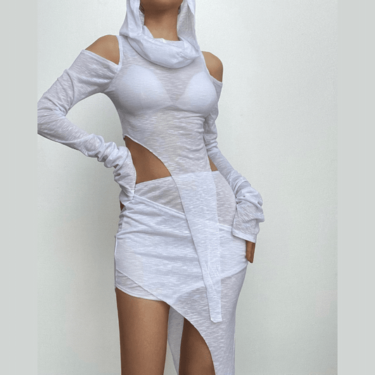 Hoodie irregular solid off shoulder long sleeve mini skirt set