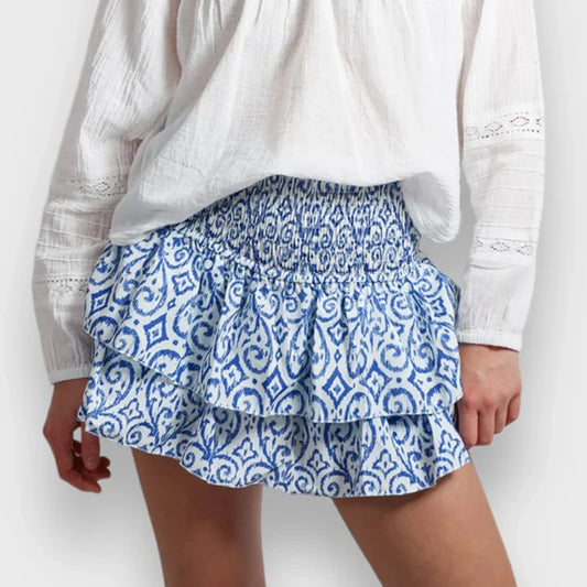 Irregular Printed Mesh Shirring Skirt Grunge Fairycore Skirt