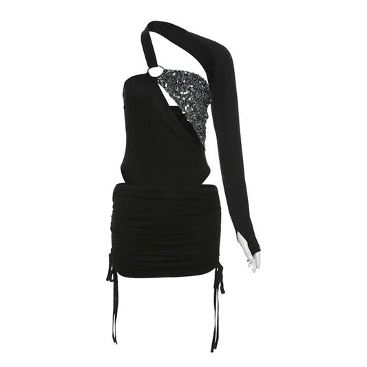 Irregular long sleeve gloves o ring glitter mini skirt set