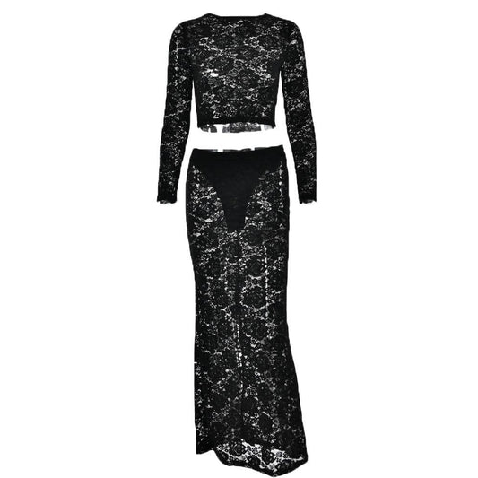 Lace Jumpsuit Hip-Wrapped Skirt Set