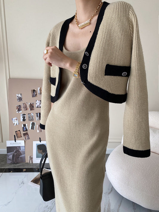 Leisure Contrast Trim Knit Skirt Set