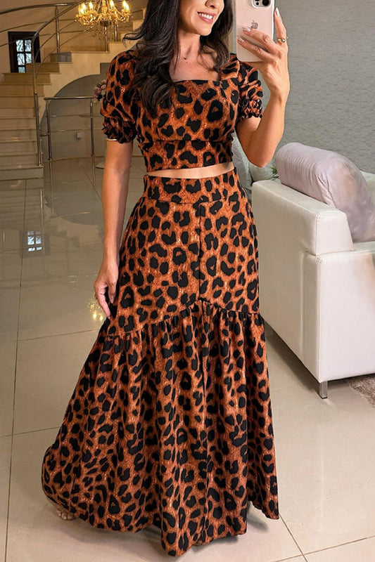 Leopard Print Tube Top Mid Length Skirt Coord Set