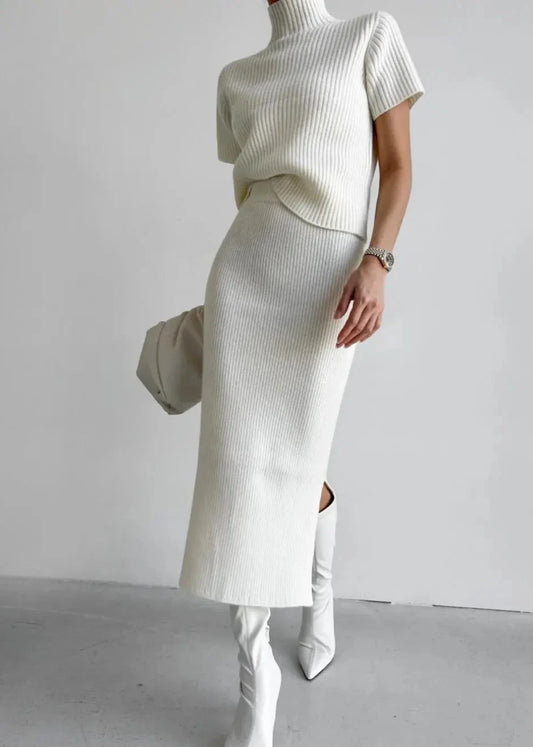 Miss Paris Stripe Two Piece Knit Skirt Set