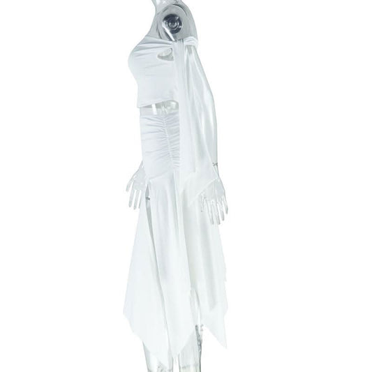 One Shoulder Backless Crop Top & High Slit Skirt Coord Set