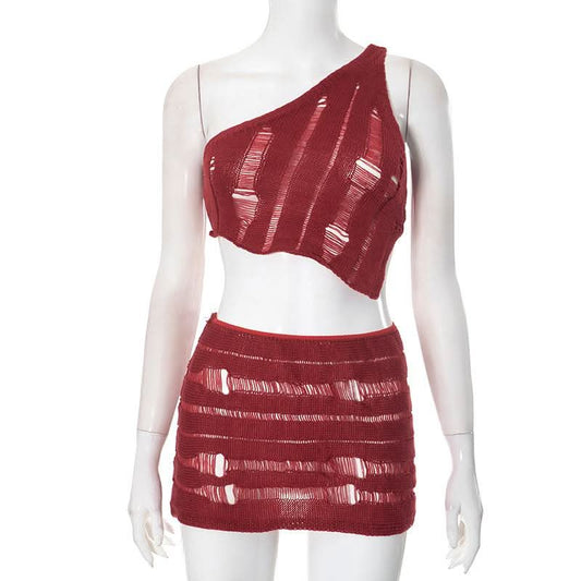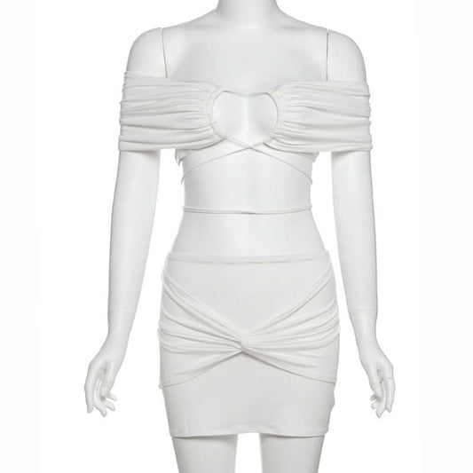 One Shoulder Crop Top & Cutout Skirt Coord Set