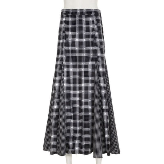 Plaid contrast lace hem v neck slit cami maxi skirt set
