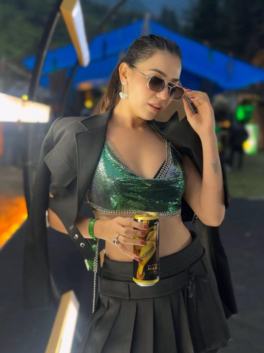 Pleated Ruffle-Cuff Velvet Skirt Set