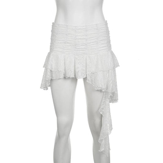 Ruched lace hem metal chain lace up zip-up mini skirt | victorian gothic dresses