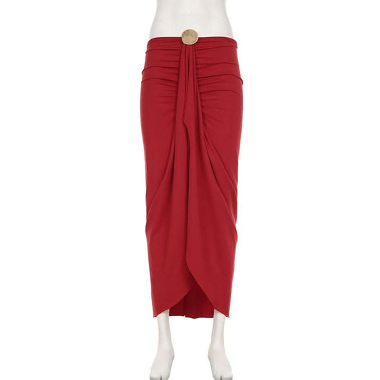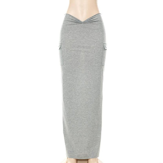 Ruched pocket cargo solid low rise maxi skirt-final-sale