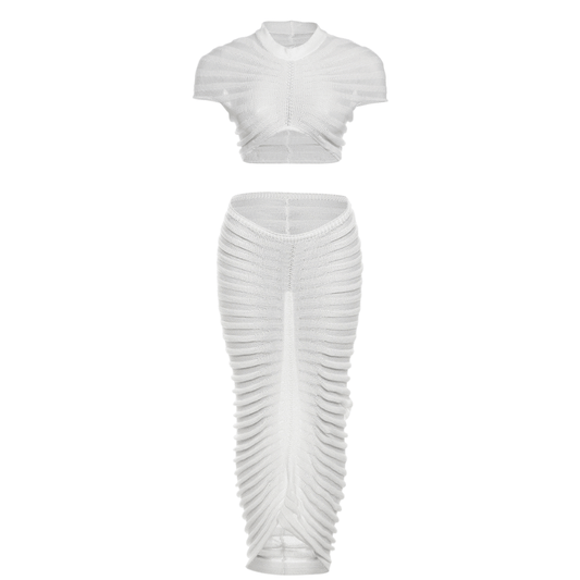 Ruffle Deep Neck Crop Top & Skirt Coord Set
