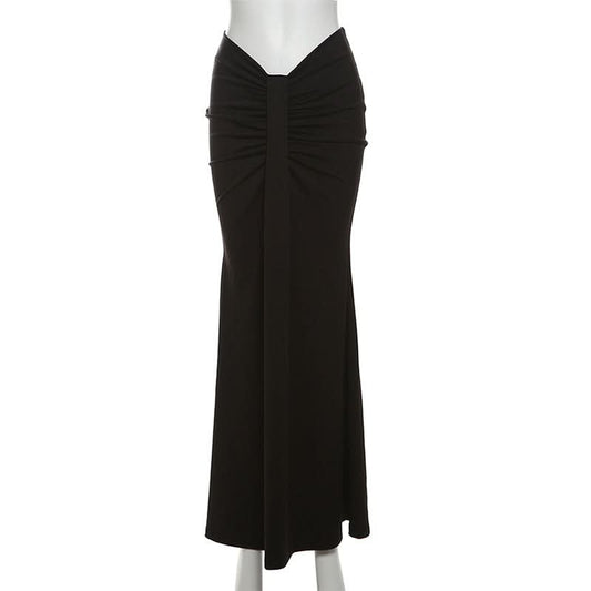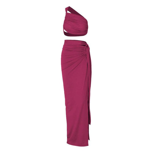 Ruched solid one shoulder irregular self tie maxi skirt set