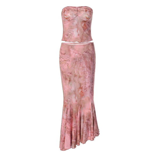 Ruched Spaghetti Strap Crop Top & High Slit Skirt Coord Set