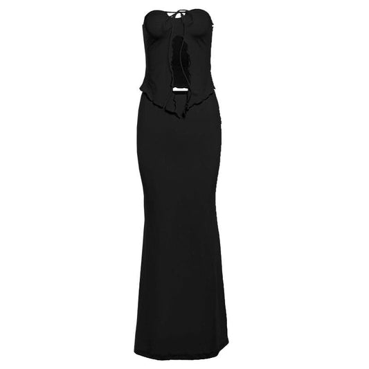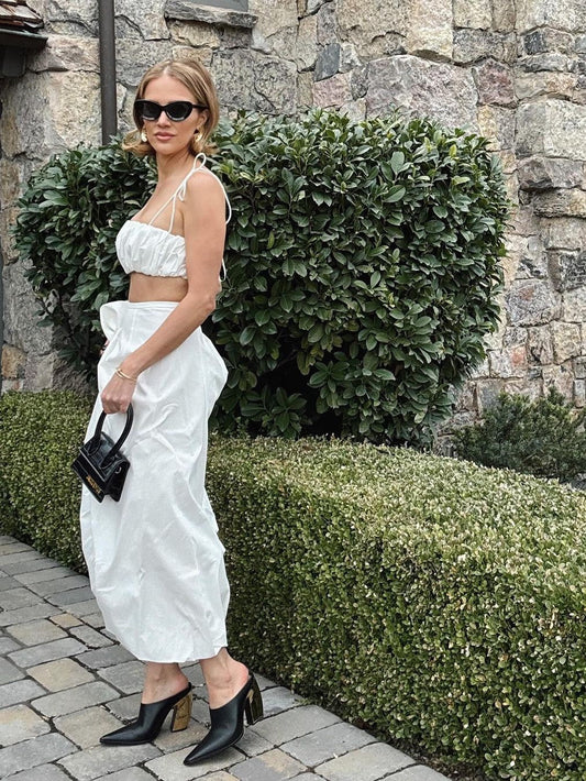 Ruffle Tied Spaghetti Strap Top & Skirt Coord Set