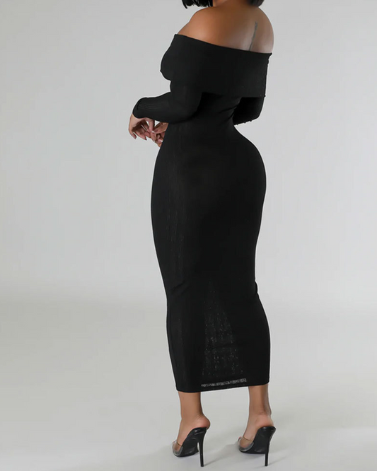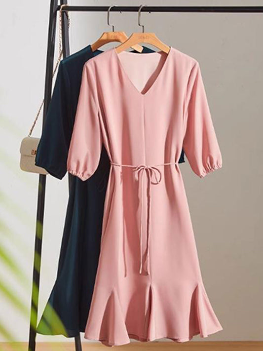 Claire Elegant V-Neck Puff Sleeve Solid Color Dress