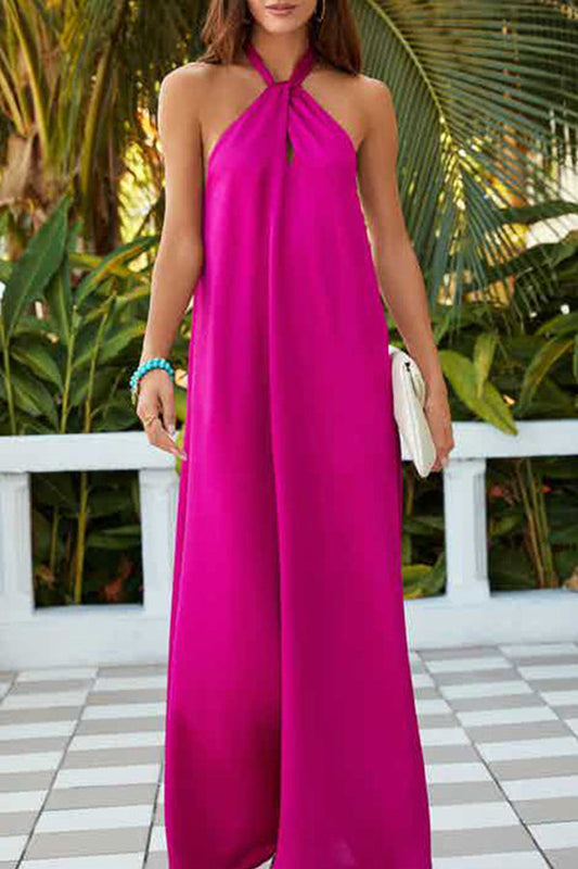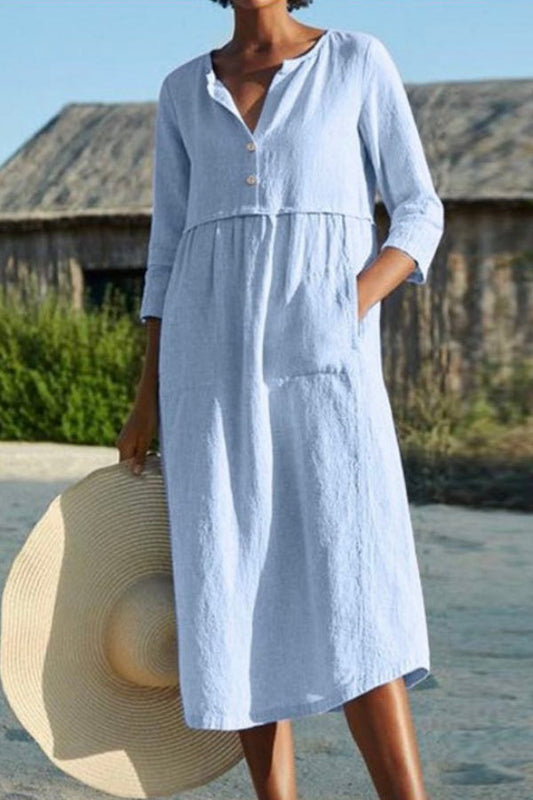 Emma Elegant V-Neck Solid Color Dress-Blue