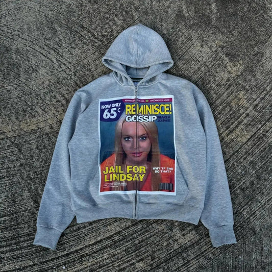 Dark Vintage Letter Print Zip Hoodie
