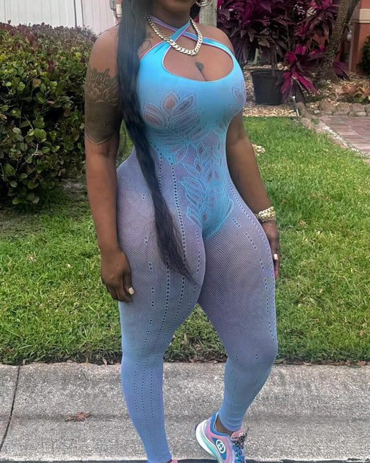 Cross Halter Neck Backless Slim Fit Sports Hollow Jumpsuit