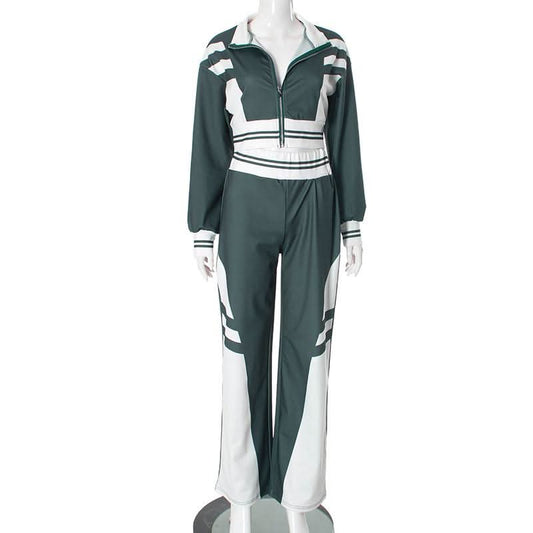 Bold Claim Sporty Patchwork Lapel Blazer and Elastic Waist Pocket Loose Pants Set