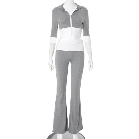 Sportswear Solid Frenulum Hooded Collar Long Sleeve Two Pieces
