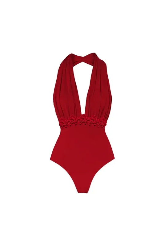 Floral Appliqué Cutout One Piece Swimsuit Set