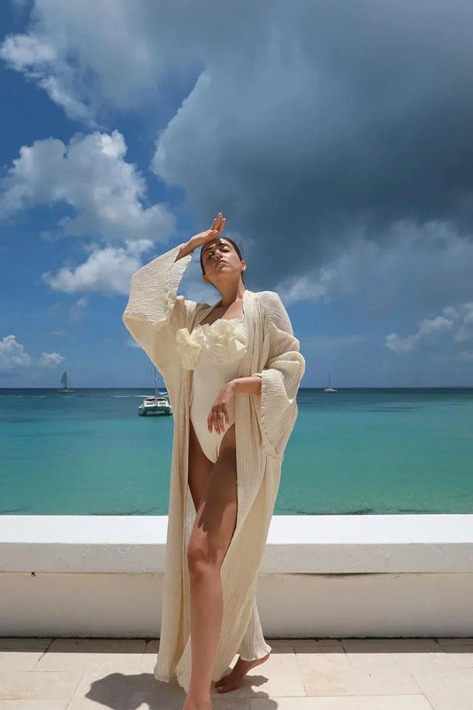 Floral Appliqué Tie-Up Fairy Style Swimsuit
