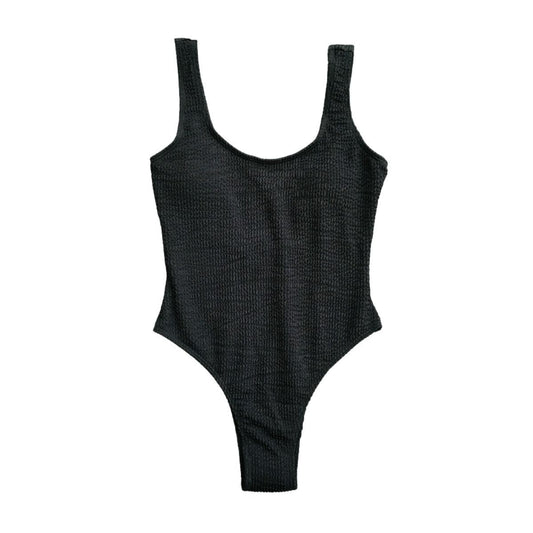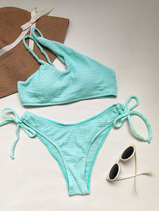 Textured solid sleeveless hollow out u neck bikini swimwear