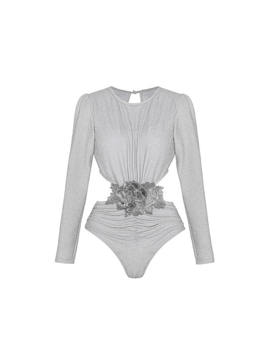Metallic Embroidery Swimsuit & Skirt Coord Set
