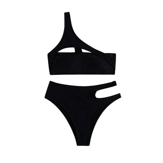 One shoulder solid hollow out bikini swimwear