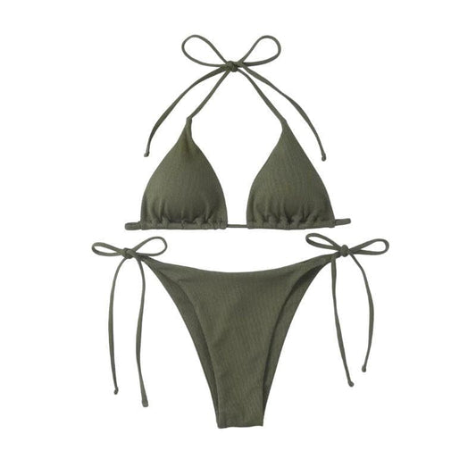 Solid textured halter self tie padded bikini swimwear