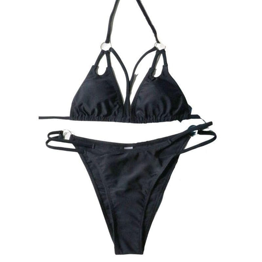 Cross front solid o ring halter bikini swimwear