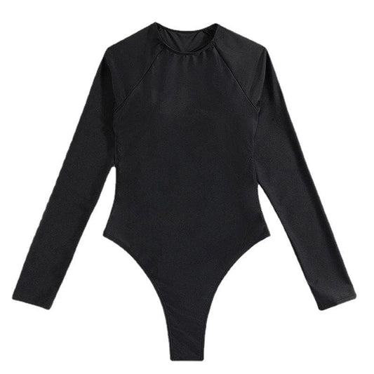Stone decor long sleeve solid backless one piece swimwear