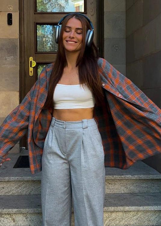 Retro Plaid Women's Shirt - Minimalist Long Sleeve