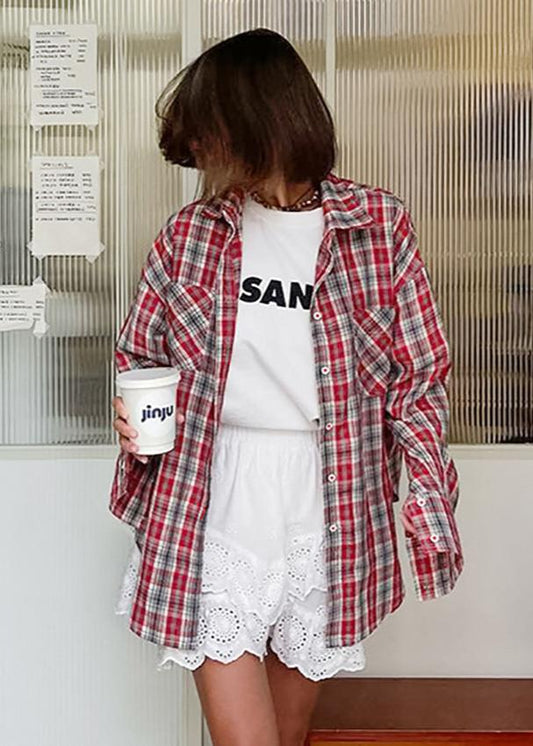 Loose Distressed Plaid Retro Shirt